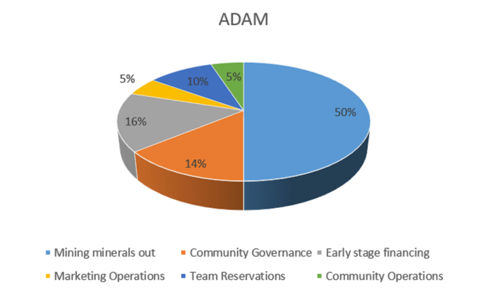 50% of ADAM tokens are produced by mining, which is one of the main ways to obtain ADAM. Users can obtain ADAM token rewards by participating in pledge or liquidity mining;